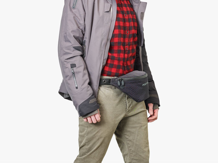 Created from the signature fabric with minimal construction seams, the design-driven BootyBag is perfect for carrying everyday essentials. A high quality metal eyelet on the webbing al- lows you to snap on your key ring and other hardware. A rubber portal will let out your ear buds while keeping your phone protected inside the bag.