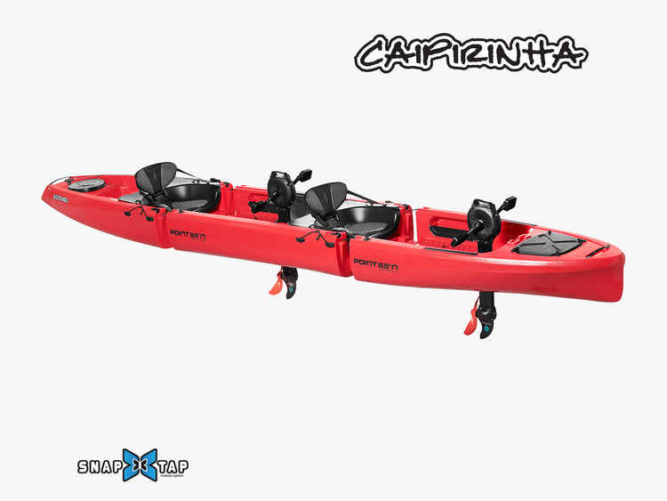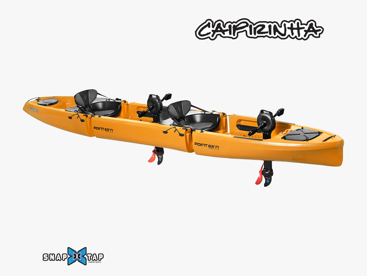 The Caipirinha is a modular sit-on-top kayak that you can carry with a smile on your face, transport in the back of most cars, and store under your bed. With the patented Snap-Tap system, the Caipirinha snaps apart into manageable sections and re-assembles in seconds.